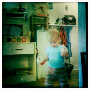 It’s been a slow transition.  I don’t consider 12 months to be the magic turning point from baby to toddler but rather when a flexible idea of milestones and behaviors emerge.  She’s really a toddler now, gets her feelings hurt, picks her nose, shrieks “baba” when she sees another baby, is figuring out how to annoy her sister for fun and now walks.  Also?  She breastfeeds like a toddler.  Today she shoved a board book down the top of my shirt, grinned and signed milk.  Apparently I breastfeed a toddler AAAAAND board books.